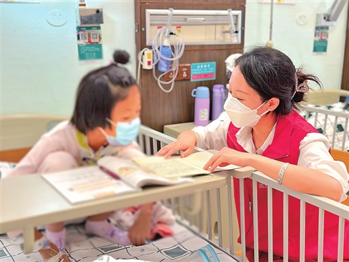 今年以来,广东邮政志愿服务总队持续参与广州市三十七度公益促进会创办的“温暖朗读者”志愿服务活动,每月第二个周日组织志愿者到省中医院儿科为住院儿童读书,为病痛中的孩子送去温暖,为其家庭送出一份鼓励。活动开展以来,广受医院及患者家庭的好评。□陈志蓉 摄影报道